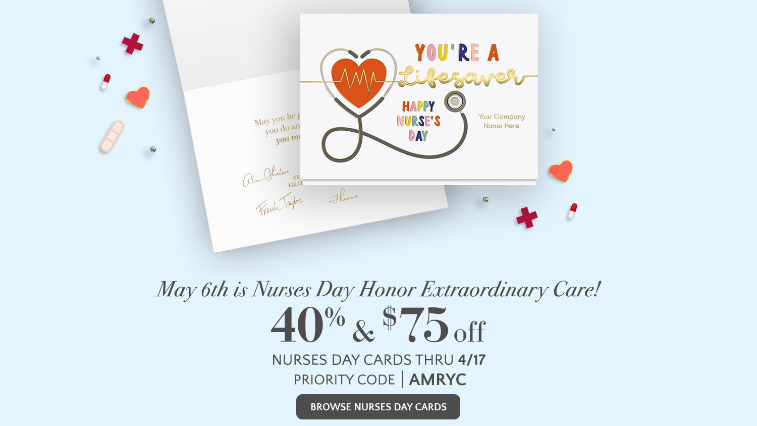 To enhance brand recognition, we offer the option to add your business name or company logo on the front of select cards. Choose from one of our many sentiments for inside the card or write your own. Options to include your corporate logo and staff signatures beneath the sentiment can add a distinctive and professional touch. Many of our clients have found that these custom touches deepen connections and inspire positive feedback from recipients.